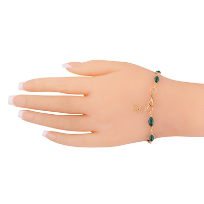 Beautifully Handcrafted Bezel with Nine Gemstones Green Onyx Marquise Shape Solid Brass Bracelet