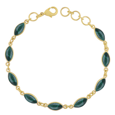 Beautifully Handcrafted Bezel with Nine Gemstones Malachite Marquise Shape Solid Brass Bracelet