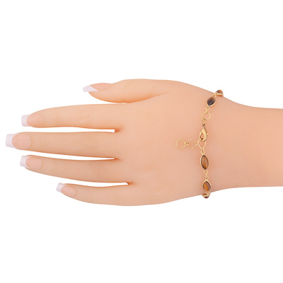 Beautifully Handcrafted Bezel with Nine Gemstones Garnet Marquise Shape Solid Brass Bracelet