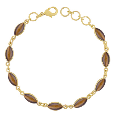Beautifully Handcrafted Bezel with Nine Gemstones Tiger's Eye Marquise Shape Solid Brass Bracelet