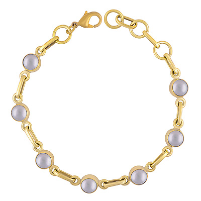 Home | Fashion Bracelets | Brass Gemstone Bracelets | Stunning Linked Multiple Gemstone Pearl Round Shape Solid Brass Bracelet