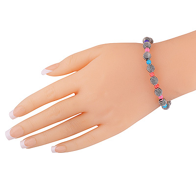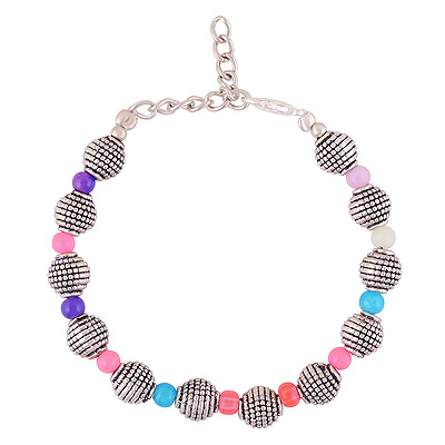 Stunning Multicolor & Rawa beads Onyx Round Shape German Silver Bracelet