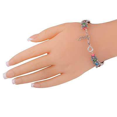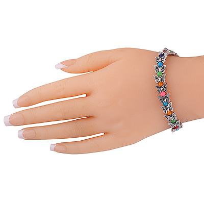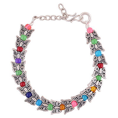 Stunning Multicolor Beads & Butterfly Onyx Round Shape German Silver Bracelet