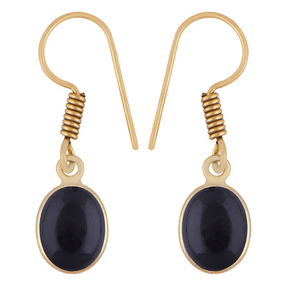 Home | Fashion Earrings | Brass Gemstone Earrings | Alluring Plain Bezel Black Onyx Oval Shape Solid Brass Dangle Earrings