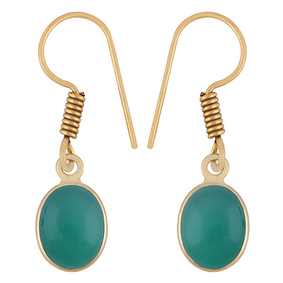 Home | Fashion Earrings | Brass Gemstone Earrings | Alluring Plain Bezel Green Onyx Oval Shape Solid Brass Dangle Earrings