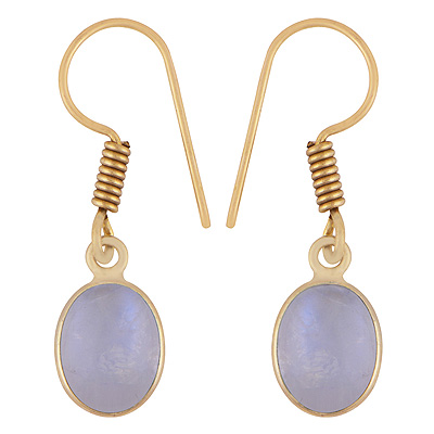 Home | Fashion Earrings | Brass Gemstone Earrings | Alluring Plain Bezel Rainbow Moonstone Oval Shape Solid Brass Dangle Earrings
