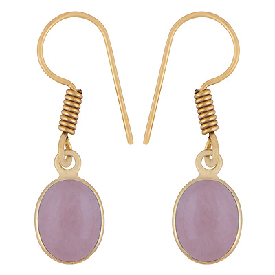 Home | Fashion Earrings | Brass Gemstone Earrings | Alluring Plain Bezel Rose Quartz Oval Shape Solid Brass Dangle Earrings