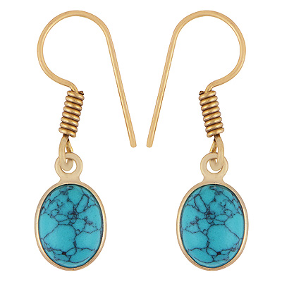Home | Fashion Earrings | Brass Gemstone Earrings | Alluring Plain Bezel Turquoise Oval Shape Solid Brass Dangle Earrings