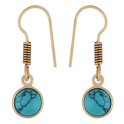 Home | Fashion Earrings | Brass Gemstone Earrings | Stunning Handmade Bezel Turquoise Round Shape Solid Brass Dangle Earrings
