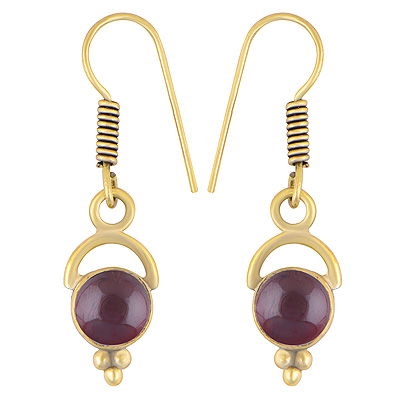 Home | Fashion Earrings | Brass Gemstone Earrings | Alluring Moon Pattern On Garnet Round Shape Solid Brass Dangle Earrings