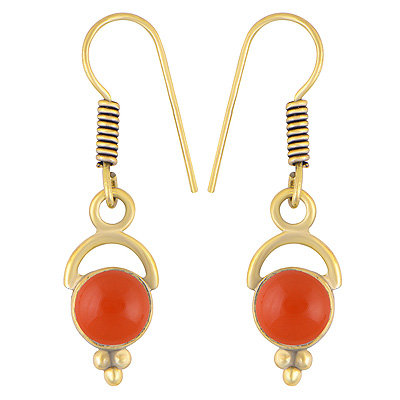 Home | Fashion Earrings | Brass Gemstone Earrings | Alluring Moon Pattern On Carnelian Round Shape Solid Brass Dangle Earrings