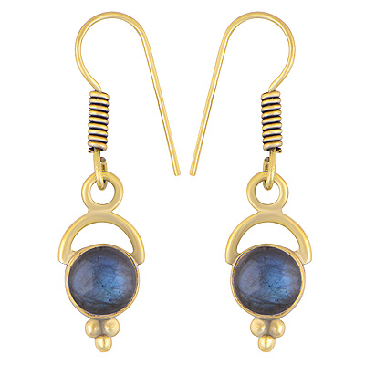 Home | Fashion Earrings | Brass Gemstone Earrings | Alluring Moon Pattern On Labradorite Round Shape Solid Brass Dangle Earrings
