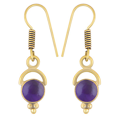 Home | Fashion Earrings | Brass Gemstone Earrings | Alluring Moon Pattern On Amethyst Round Shape Solid Brass Dangle Earrings