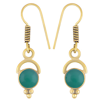 Home | Fashion Earrings | Brass Gemstone Earrings | Alluring Moon Pattern On Green Onyx Round Shape Solid Brass Dangle Earrings