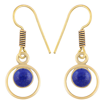 Home | Fashion Earrings | Brass Gemstone Earrings | Gorgeous Circle Around Lapis Round Shape Solid Brass Dangle Earrings