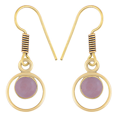 Home | Fashion Earrings | Brass Gemstone Earrings | Gorgeous Circle Around Rose Quartz Round Shape Solid Brass Dangle Earrings