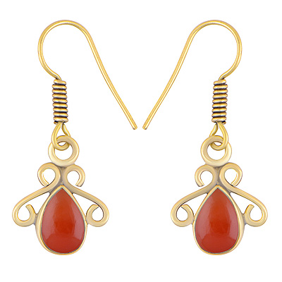 Home | Fashion Earrings | Brass Gemstone Earrings | Stunning Wire Pattern Around Carnelian Pear Shape Solid Brass Dangle Earrings
