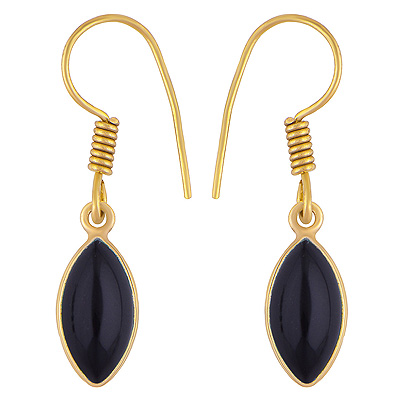 Home | Fashion Earrings | Brass Gemstone Earrings | Classic Bezel Frame Around Black Onyx Marquise Shape Solid Brass Dangle Earrings