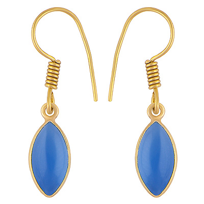 Home | Fashion Earrings | Brass Gemstone Earrings | Classic Bezel Frame Around Blue Chalcedony Marquise Shape Solid Brass Dangle Earrings