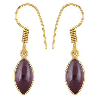 Home | Fashion Earrings | Brass Gemstone Earrings | Classic Bezel Frame Around Garnet Marquise Shape Solid Brass Dangle Earrings