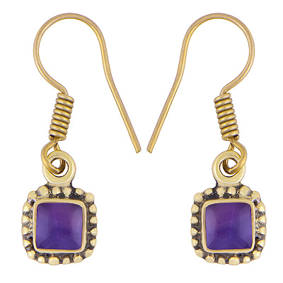 Home | Fashion Earrings | Brass Gemstone Earrings | Stunning Rawa Work Around Amethyst Square Shape Solid Brass Dangle Earrings