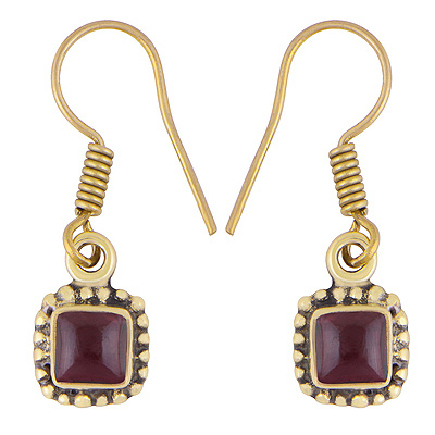 Home | Fashion Earrings | Brass Gemstone Earrings | Stunning Rawa Work Around Garnet Square Shape Solid Brass Dangle Earrings