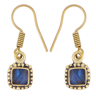 Home | Fashion Earrings | Brass Gemstone Earrings | Stunning Rawa Work Around Labradorite Square Shape Solid Brass Dangle Earrings