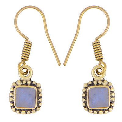 Home | Fashion Earrings | Brass Gemstone Earrings | Stunning Rawa Work Around Rainbow Moonstone Square Shape Solid Brass Dangle Earrings
