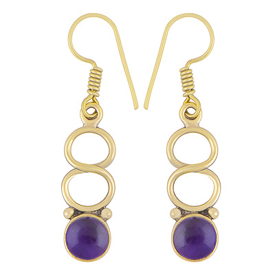 Home | Fashion Earrings | Brass Gemstone Earrings | Stunning Design Pattern Around Amethyst Round Shape Solid Brass Dangle Earrings