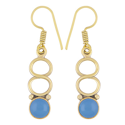 Home | Fashion Earrings | Brass Gemstone Earrings | Stunning Design Pattern Around Blue Chalcedony Round Shape Solid Brass Dangle Earrings