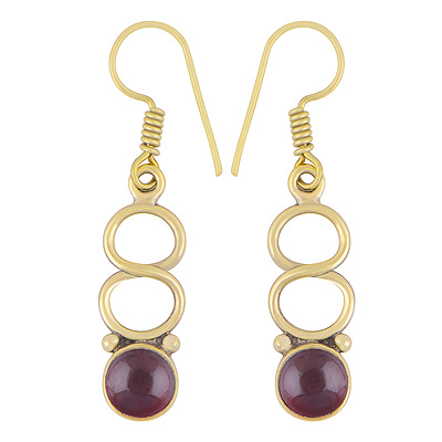 Home | Fashion Earrings | Brass Gemstone Earrings | Stunning Design Pattern Around Garnet Round Shape Solid Brass Dangle Earrings