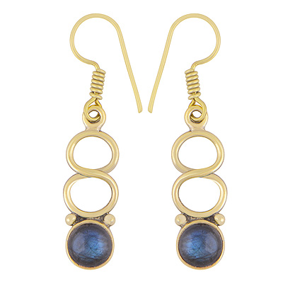 Home | Fashion Earrings | Brass Gemstone Earrings | Stunning Design Pattern Around Labradorite Round Shape Solid Brass Dangle Earrings