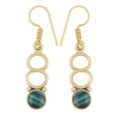 Home | Fashion Earrings | Brass Gemstone Earrings | Stunning Design Pattern Around Malachite Round Shape Solid Brass Dangle Earrings