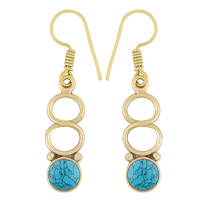 Home | Fashion Earrings | Brass Gemstone Earrings | Stunning Design Pattern Around Turquoise Round Shape Solid Brass Dangle Earrings