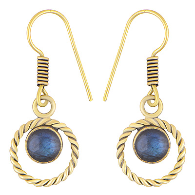 Home | Fashion Earrings | Brass Gemstone Earrings | Beautiful Twisted Wire Circle Around Labradorite Round Shape Solid Brass Dangle Earrings
