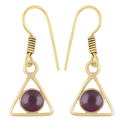 Home | Fashion Earrings | Brass Gemstone Earrings | Gorgeous Triangle Plain Wair Around Garnet Round Shape Solid Brass Dangle Earrings