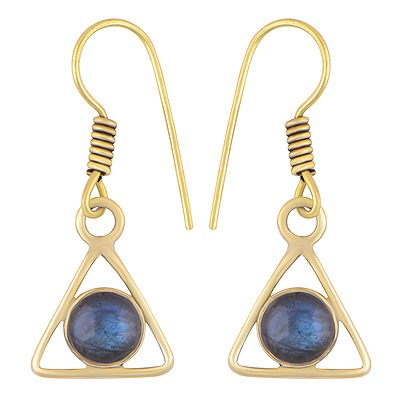 Home | Fashion Earrings | Brass Gemstone Earrings | Gorgeous Triangle Plain Wair Around Labradorite Round Shape Solid Brass Dangle Earrings