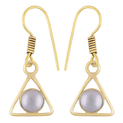 Home | Fashion Earrings | Brass Gemstone Earrings | Gorgeous Triangle Plain Wair Around Pearl Round Shape Solid Brass Dangle Earrings
