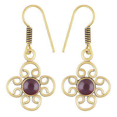 Home | Fashion Earrings | Brass Gemstone Earrings | Alluring Handcrafted Work Around Garnet Round Shape Solid Brass Dangle Earrings