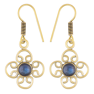 Home | Fashion Earrings | Brass Gemstone Earrings | Alluring Handcrafted Work Around Labradorite Round Shape Solid Brass Dangle Earrings