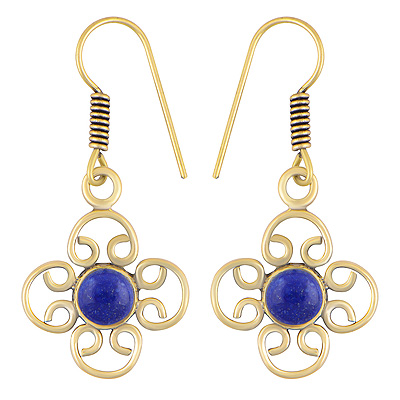 Home | Fashion Earrings | Brass Gemstone Earrings | Alluring Handcrafted Work Around Lapis Round Shape Solid Brass Dangle Earrings