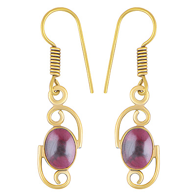 Home | Fashion Earrings | Brass Gemstone Earrings | Stunning Abstract Design Garnet Oval Shape Solid Brass Dangle Earrings