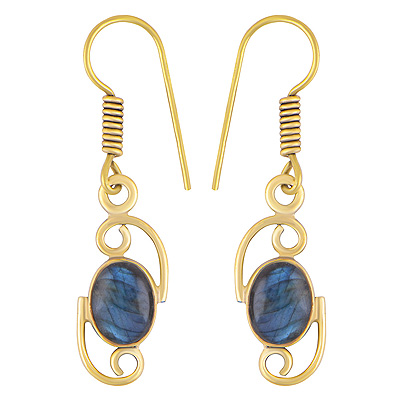 Home | Fashion Earrings | Brass Gemstone Earrings | Stunning Abstract Design Labradorite Oval Shape Solid Brass Dangle Earrings