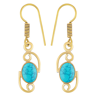 Home | Fashion Earrings | Brass Gemstone Earrings | Stunning Abstract Design Turquoise Oval Shape Solid Brass Dangle Earrings