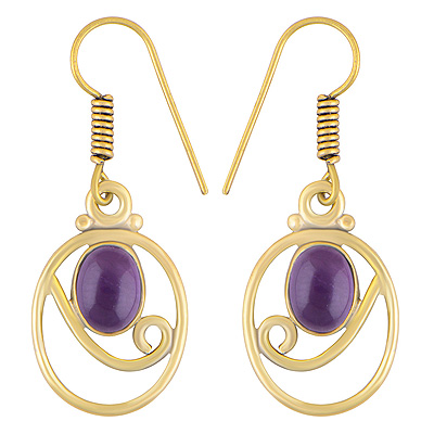Home | Fashion Earrings | Brass Gemstone Earrings | Alluring Pattern Around Amethyst Oval Shape Solid Brass Dangle Earrings