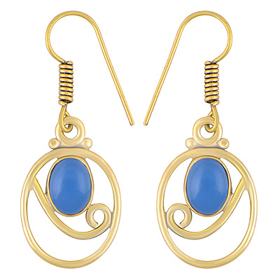 Home | Fashion Earrings | Brass Gemstone Earrings | Alluring Pattern Around Blue Chalcedony Oval Shape Solid Brass Dangle Earrings