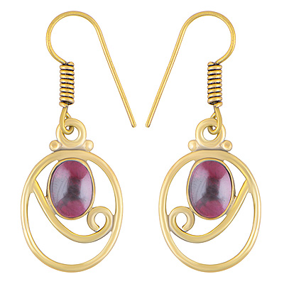 Home | Fashion Earrings | Brass Gemstone Earrings | Alluring Pattern Around Garnet Oval Shape Solid Brass Dangle Earrings