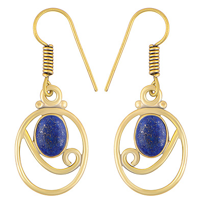 Home | Fashion Earrings | Brass Gemstone Earrings | Alluring Pattern Around Lapis Oval Shape Solid Brass Dangle Earrings