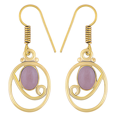 Home | Fashion Earrings | Brass Gemstone Earrings | Alluring Pattern Around Rose Quartz Oval Shape Solid Brass Dangle Earrings