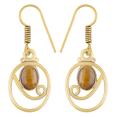 Home | Fashion Earrings | Brass Gemstone Earrings | Alluring Pattern Around Tiger's Eye Oval Shape Solid Brass Dangle Earrings